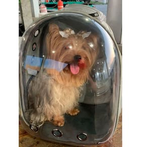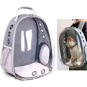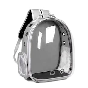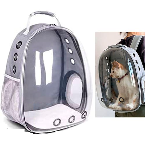 A mochila é totalmente transparente com uma visão panorâmica assim proporcionando para seu Gato ou Cachorro uma visão nítida. Dentro dá bolsa há um cinto de segurança para prender na coleira, trazendo maior proteção para seu bichinho de estimação. Também possui vários furos à sua volta para que a seu mascote fique sempre bem ventilada e cheire todos os cheiros que o rodeiam.