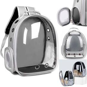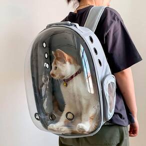 A mochila é totalmente transparente com uma visão panorâmica assim proporcionando para seu Gato ou Cachorro uma visão nítida. Dentro dá bolsa há um cinto de segurança para prender na coleira, trazendo maior proteção para seu bichinho de estimação. Também possui vários furos à sua volta para que a seu mascote fique sempre bem ventilada e cheire todos os cheiros que o rodeiam.