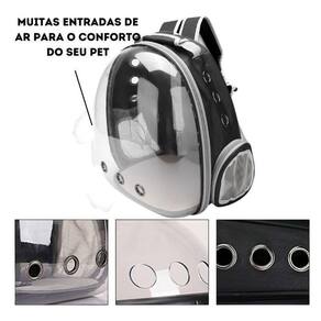 Benefícios - Resistente; - Ótima qualidade; - Furos respiradores dos lados e na frente; - Feita em PVC, tecido Oxford e acrílico; - Segura e confortável; - Prática e fácil de transportar; - Proporciona visão panorâmica para o pet.
