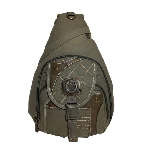 Mochila Transversal Lona Reforçada KVN 201351 Verde É a mochila esportiva que você procurava, tem capacidade de, aproximadamente 20 litros. Com uma alça transversal confortável e reforçada, com engate rápido, tornando-se ideal para quem anda de moto, ciclismo, faz trilhas ou mesmo quem quer uma mochila discreta e com estilo, para trabalho, Faculdade, passeio, viagem e academia.