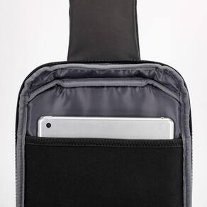 Alça de ombro ajustável para uso à esquerda ou direita. Compartimento acolchoado para proteger seu tablet. Bolso interno para itens essenciais como documentos e cartões. Porta USB para carregar dispositivos em movimento.