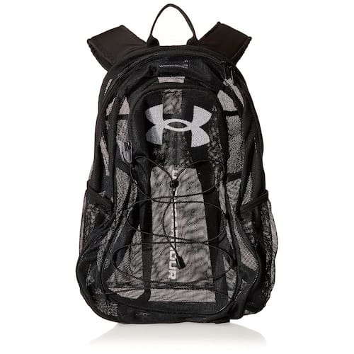 Under Armour Mochila de malha Hustle, (001) Preto/Branco - Durável, material de malha e parte inferior revestida resistente à abrasão - Alças acolchoadas e moldadas tornam o transporte mais confortável - Capa para laptop com painel de organização — comporta MacBook Pro de até 15 polegadas ou laptop de tamanho semelhante - Manga frontal com fecho elástico para guardar facilmente uma jaqueta, par de sapatos ou bola - Bolso frontal com zíper para objetos de valor - 2 bolsos laterais para garrafa de água - Alça superior - Dimensões quando cheia: 32 cm L x 40 cm A x 15 cm C - Volume: 1.426,8 polegadas cúbicas. / 28 L