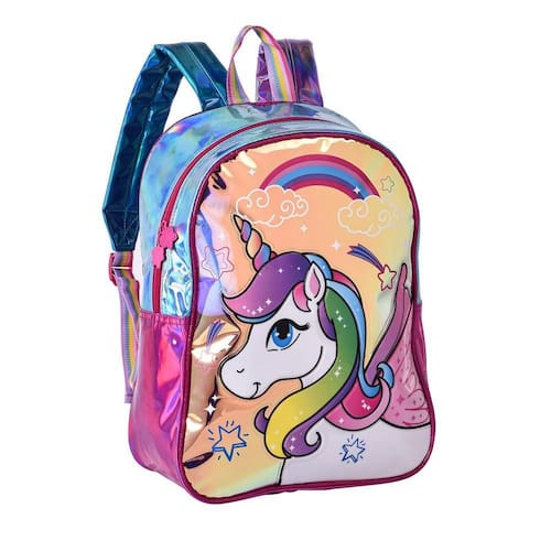 Mochila unicornio holográfica brilhante bolsa escolar infantil Cor: rosa Mochila de unicórnio holografica tendência volta às aulas A clio viajou na companhia da turminha que a criançada mais gosta pra trazer a linha infantil pra vocês O material holográfico, além de um dos maiores destaques da volta às aulas, remete ao arco-íris e o universo mágico dos unicórnios Linha confeccionada em material holográfico e com puxador personalizado e alças e cadarços de arco-íris. - compartimento principal espaçoso para cadernos, livros... - alças de ombro em cores diferentes Dimensões aproximadas: 40 x 32 x 15cm