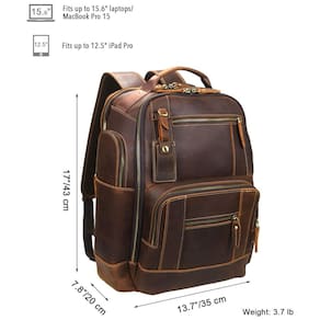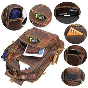 Painéis classificados de malhas e alças ajustáveispara uso, não mancham suas roupas. 2 disparidades principais. O principal compartimento frontal multifuncional para manter tudo limpo e organizado. Bolso lateral com zíper em ambos os lados para garrafa de água ou guarda chuva. Possui um cinto que desliza sobre as alças da bagagem. Empilhe esta mochila de grande capacidade em sua bagagem com rodas para liberar seu ombro ou mãos enquanto carrega coisas mais pesadas. Melhor com design de idade. O couro foi tratado para parecer e sentir se envelhecido, mantendo sua resistência. Quanto mais você usa, melhor fica Marca: Não Informado