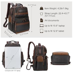Material Premium Esta mochila de viagem é feita de couro bovino de grão integral e zíperes YKK premium. Use hardware personalizado e costura resistente para garantir durabilidade de longa duração. A parte traseira vem com design acolchoado, respirável e confortável.