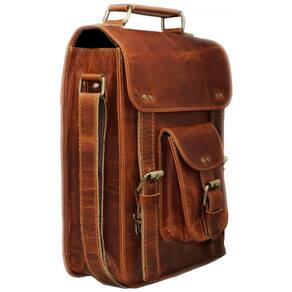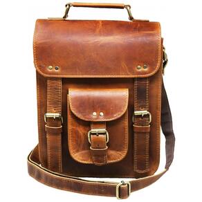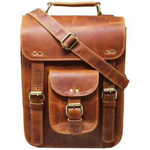 MATERIAL PREMIUM Couro de cabra de grão superior superior, costurado com maestria com fio encerado durável para garantir uma bolsa Satchel de longa duração. O forro interno da bolsa é de lona resistente. A bolsa, quando cheia, fica em pé sozinha