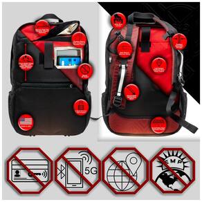 FEITO NOS EUA Las Vegas, Nevada. Recursos de bloqueio de sinal de nível industrial. O tecido para revestir a capa do notebook roll top diminuta sinal, como sinais de RF, WiFi, telefone celular incluindo 5G, GPS e Bluetooth com uma atenuação média de 80dB 100dB de blindagem de 10Mhz a 5Ghz. Construído em tecido Faraday Xtreme Sight Line Form composto por fibras de cobre e proteção de alta blindagem militar em nylon balístico 1680 de grau resistente a rasgos. para proteção inteligente contra sistemas de frequência RF, como sinal de celular, WiFi e Bluetooth, transmissão por satélite GPS, transmissão de chave de veículo, pulso eletromagnético EMP e interferência eletromagnética Marca: Não Informado