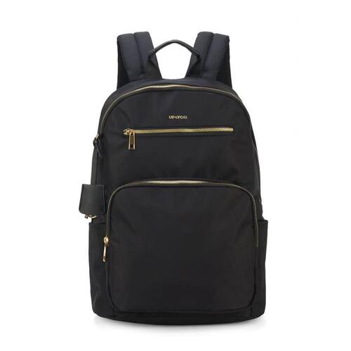 Cor: Preto Material: Poliéster Organizadores internos Alça de mão superior Alça de costas acolchoadas e reguláveis Compartimento para notebook 2 bolsos frontais com zíper Bolsos laterais Capacidade: 24 Litros