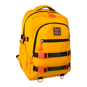 Disponível em um tom amarelo vibrante, a mochila se destaca como um acessório que transmite otimismo e vitalidade. Os detalhes contrastantes, como as alças ajustáveis em preto e os acabamentos em laranja, reforçam um estilo ousado e marcante, ideal para quem quer expressar personalidade em cada detalhe.