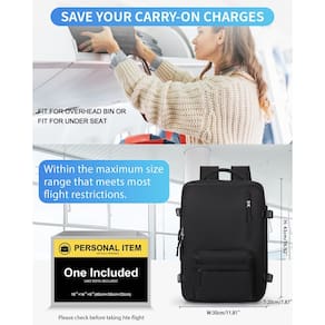 Mochila de viagem para laptop - Mochila de mão para mulheres: o tamanho da mochila é de 29 x 19 x 40 cm; Mochila de viagem para mulheres aprovada por companhias aéreas que pode ser transportada em voo, economiza uma fortuna em taxas verificadas e é perfeita para viajar ou em viagens de negócios sob o assento no avião. - Mochila de viagem de grande capacidade: dois bolsos principais para itens pessoais femininos, roupas e muito mais; mantenha seus itens organizados e mais fáceis de encontrar. Dois compartimentos para laptop para um ipad de 13 polegadas e um laptop de 15,6 polegadas. A mochila casual também é projetada com uma bolsa úmida à prova d'água e um compartimento separado para sapatos, a bolsa úmida é feita de material impermeável de alta densidade para ajudar você a separar itens úmidos e secos, e o compartimento separado para sapatos pode ajudá-lo a transportar melhor seus sapatos - Mochila multifuncional antirroubo: com mangas de carrinho, a mochila pode ser colocada na barra de tração para facilitar a portabilidade. Há um bolso oculto antirroubo na parte de trás para proteger seus pertences de roubo. Perfeita como mochila do dia a dia, mochila para laptop e mochila casual para viagens de fim de semana. - Interface USB da mochila para laptop: com carregador USB externo integrado e cabo de carregamento interno embutido, esta mochila USB oferece a você uma maneira mais conveniente de carregar seu telefone, iPad e laptop. Observe que esta mochila não inclui o carregador portátil em si, a porta de carregamento USB oferece apenas carregamento conveniente. - Mochila multiuso: a mochila pode ser expandida livremente em 180 graus, perfeita para atividades internas/externas. Também funciona como uma mochila grande para laptop, você pode usá-la em qualquer lugar para viagens internacionais, acampamento, excursões e pernoites. - Este item não se destina a ser utilizado por crianças menores de 12 anos.
