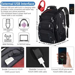 Mochila de viagem extragrande de 46,7 cm para laptop para jogos, porta de carregamento USB, aprovada pela TSA, antifurto, viagem, grande capacidade, para computador, mochila para homens, mulheres, negócios, GG, mochila de trabalho - Mochila extragrande para laptop para jogos -- Tamanho externo da mochila de viagem de negócios extragrande: 56 x 43 x 25 cm. Capacidade: 60 L. Vários compartimentos oferecem excelente proteção para 2 laptops e tablets. Serve para a maioria dos laptops de 19,18,4,18,17,17,15,6,15 cm - Porta de carregamento USB de grande capacidade: o maior compartimento principal comporta roupas de viagem de 3 a 4 dias. Muitos bolsos ocultos podem acomodar muitos acessórios de viagem, artigos de papelaria, artigos de higiene pessoal, bolso lateral com zíper para facilitar o acesso essencial, porta USB externa com cabo de carregamento integrado oferece carregamento conveniente do seu celular e outros dispositivos eletrônicos. Um orifício para fone de ouvido externo facilita o acesso ao uso do fone de ouvido. Mochila XL resistente feita de tecido de nylon e poliéster - Antifurto RFID aprovado pela TSA: desdobra a mochila extra grande 90 a 180 graus, fazendo você passar rapidamente pela segurança do aeroporto e manter os itens organizados, projetada para viagens de avião. Mochila grande para atividades internas/externas, serve como mochila para laptop. Bolso RFID com identificação por radiofrequência RFID ajuda a proteger os dados pessoais codificados em seus cartões de crédito, documentos e passaportes. Bolso na parte de trás da mochila, fácil de colocar seu telefone, bolsa e passaporte - Mochila esportiva: para jogadores, espaço para todos os seus equipamentos esportivos para que eles não percam nada, um lugar para tudo: garrafas de água, guarda-chuva, chuteiras, meias, protetores de canela, jaqueta, lanches. O mais especial é o bolso externo, com alças de compressão ajustáveis para basquete, rúgbi e vôlei de tamanho completo - Alça traseira para bagagem: o design de ventilação em forma de U nas costas ajuda na convecção de ar. Alças de ombro ajustáveis com acolchoamento ajudam a aliviar o desconforto do seu ombro. Uma alça de bagagem permite que a mochila se encaixe na bagagem/mala, deslize sobre o tubo da alça vertical para facilitar o transporte; a alça ajustável deixa as alças de ombro mais apertadas. Além disso, mochila com uma alça robusta e resistente com cabo de aço na parte superior para transporte