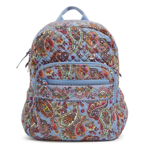 Vera Bradley Mochila feminina de algodão campus, Provence Paisley, Tamanho único - Elegante, leve e com tamanho certo – a mochila campus mede 43 cm de altura, 28 cm de largura e 20 cm de profundidade com uma alça superior de 7,6 cm e alças ajustáveis de 81 cm, com uma manga de carrinho para viagens tranquilas - Chique e segura – Mantenha seus itens essenciais de tecnologia seguros com 2 bolsos internos de malha que funcionam como compartimentos para laptop ou tablet para trabalho ou campus – adicione o fecho superior com zíper e forro de poliéster totalmente impresso e você está pronto para conquistar o dia - Transporte sem complicações – A mochila Vera Bradley Campus é feita de algodão acolchoado leve e colorido e possui 2 bolsos com zíper, 2 bolsos laterais e um bolso traseiro com zíper oculto para que você possa viajar com facilidade e chegar com estilo - Organização infinita – o compartimento frontal com zíper possui 4 bolsos deslizantes, 3 bolsos para caneta e uma janela para identidade para manter seus suprimentos essenciais organizados e de acesso rápido - ALGODÃO RECICLADO À MÁQUINA LAVÁVEL - O tecido de algodão com o qual você está familiarizado foi reimaginado; este tecido sustentável é feito de fibras de algodão reciclado e tem todo o conforto, suavidade e vibração que você conhece e ama.