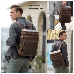 Quem combina com você A mochila é de tamanho médio. Dimensão 11 L x 5,12 W x 15,35 A polegadas, 27 x 13 x , Peso 1,4 kg um pouco volumoso devido ao couro grosso, mas quanto mais espesso, mais durável será. Adequado para adultos, não importa se eles são altos ou baixos, estudantes usam ou turistas mais velhos. Pode ser mochila, mochila escolar, mochila casual, mochila para laptop, mochila de almoço. Presentes ideais para o pai, namorado ou amigos no aniversário, dia dos pais, formatura, ação de graças e Natal