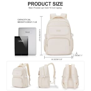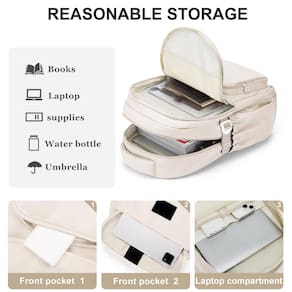 WEPOET Mochila básica para escola, casual, universitária, feminina, impermeável, para meninas adolescentes, A2 - Bege, Mochilas Daypack - ?Segurança e confortável?: o cinto atencioso em ambos os lados pode criar uma base sólida de suporte se você estiver embalando muitas coisas nas mochilas. Esta mochila escolar possui alças de ombro largas, espessas e duráveis e uma alça com bom enchimento. As alças são ajustáveis para transporte confortável. O cinto de bagagem na parte de trás pode ser colocado na bagagem/mala para tornar sua viagem mais conveniente. - ?Material impermeável e zíper suave?As mochilas são feitas de tecido de nylon à prova d'água, ultraleve e de alta densidade, que pode evitar que itens dentro da bolsa fiquem molhados na chuva. Também é resistente ao desgaste, resistente a arranhões e fácil de limpar. Mesmo que fique suja, pode ser facilmente limpa com um pano úmido (não pode ser continuamente exposta à chuva). A mochila casual usa zíperes SBS de alta qualidade para garantir o uso duradouro. - ?Grande capacidade e vários compartimentos?A mochila de viagem feminina possui 4 bolsos de tamanhos diferentes e dois bolsos laterais elásticos. O compartimento principal inclui uma capa acolchoada para laptop e dois bolsos, que podem guardar muitos livros ou roupas para uma viagem de 2 dias. O bolso frontal grande e o bolso adesivo frontal podem acomodar tablets e livros, enquanto o bolso com zíper na frente pode guardar itens essenciais diários para facilitar o acesso. Além disso, há um bolso antirroubo com zíper na parte de trás. - ?Para todas as idades e ocasiões?Nossa mochila escolar vem em 5 cores que são perfeitas para adolescentes, meninas e meninos. Ela atende à maioria das suas necessidades e é fácil de combinar com suas roupas. É adequada para viagens curtas, trabalho, compras, universidade, escola, etc. - ?Tamanho?O tamanho da mochila é de 31 cm x 43 cm x 16,8 cm (L x A x P), Peso: 700 g. A mochila para laptop com compartimento acolchoado serve para tablets de 13,3,14 cm.