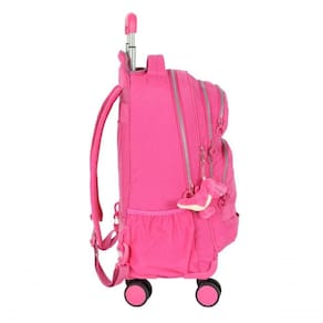 Classificada como uma mochila grande (46 x 34 x 22 cm, capacidade aproximada de 34 litros), é perfeita para levar livros, cadernos, estojos, garrafinhas e até a lancheira de forma organizada. Suas rodas 360 emborrachadas garantem mobilidade suave em qualquer direção, enquanto a base quadra reforçada proporciona estabilidade e resistência no dia a dia.