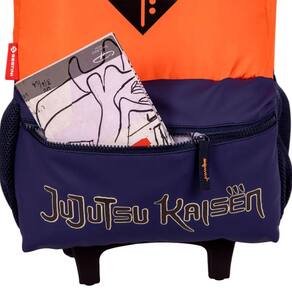 O sucesso do mundo dos animes agora na rotina escolar A mochila de rodinhas do Jujutsu Kaisen traz uma estampa caracterizada com as cores da série do momento. Para um transporte leve, o carrinho de rodinhas é a solução para um dia a dia sem muitos esforços.