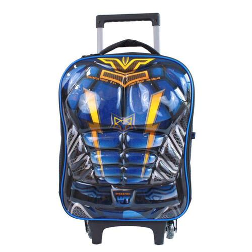 Mochila com carrinho em poliéster com frente em EVA expandido em 3D com cobertura em PVC e puxador em metal personalizado e capuz embutido!! E o melhor: o carrinho pode ser removido!