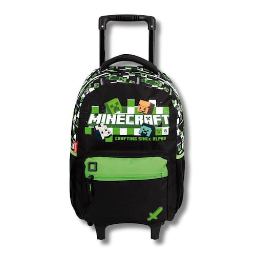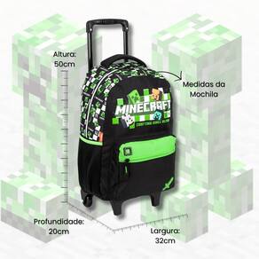 Mochilete Minecraft Creeper Infantil Escolar Rodinhas Preta