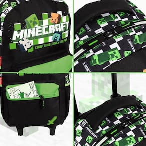 Mochilete Minecraft Creeper Infantil Escolar Passeio - Sestini É hora de embarcar em um universo cheio de boas aventuras com a mochila de rodinhas oficial do Minecraft Os personagens mais famosos do jogo que dominou o mundo estão estampados em todo o tecido. Além do compartimento espaçoso para guardar os cadernos, livros e estojo, o bolso frontal é ideal para levar outros materiais menores. Enquanto isso, as rodinhas permitem uma rotina mais leve e sem esforço para os pequenos exploradores. Características: - Mochila com haste de transporte e carrinho - Bolsos laterais telados - Confeccionada em poliéster - Detalhes em alto relevo e temáticos - Fecho em zíper personalizado - Apoio de descanso em PU - Rodinhas em TPU resistente Especificações: - Marca: Sestini - Material: 100% Poliéster - Tamanho aprox. axlxp : 50cm x 32cm x 20cm - Volume litros : 18L - Peso aprox. gramas : 1000gr Conteúdo da Embalagem: 66288-00 - 1 Mochila de Rodas Minecraft Creeper As cores podem variar entre as imagens mostradas acima e o produto. Imagens meramente ilustrativas. Todas as informações divulgadas são de responsabilidade exclusiva do fabricante. de 90 dias contra defeito de fabricação.