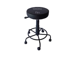 Mocho estética com base de ferro com apoio de pé com rodízio corano preto