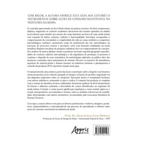 COM RIGOR, A AUTORA OFERECE ESTE GUIA AOS LEITORES O INSTRUMENTAL SOBRE AÇÕES DE CONSUMO SUSTENTÁVEL NA INDÚSTRIA DA MODA. O conteúdo apresentado no livro Moda íntima da prática à teoria é de fácil compreensão, didático, amparado no contexto acadêmico decorrente dos estudos apurados no âmbito sociocultural, para atender aos anseios do corpo feminino na busca de uma moda íntima com requinte de beleza, sedução, conforto e funcionalidade. Investigar, acompanhar o comportamento do consumidor, a complexidade do culto ao corpo atrelados a competição mercadológica, atributos sustentáveis exige do profissional um rito metodológico na execução de processos criativo e produtivo, setor com bastante visibilidade na moda brasileira. Registra um plano de pesquisa cuidadosa, foco no comportamento do consumidor, analises de marcas globais, atenta à produção nacional, regional agregando especificidades do contexto cultural, mercadológico e da engenharia de produção. O processo é continuo e depende da ação sistemática, de metodologias aplicados ao público alvo, das inovações constantes para manutenção do sistema. Decerto, as questões de manufatura, aquisição de matéria-prima e demais insumos na indústria orientam o planejamento e controle da produção-PCP, repertório tratado neste guia. O manual aborda uma ordem a partir das bases conceituais sobre a lingerie com histórico numa perspectiva socio cultural, agregado ao design e a função do produto, organizado em um diagrama explicativo sobre as categorias “funcional, básico e ornamental “atributos com valores simbólicos, nomeando os tipos e estilos. O conjunto da produção se completa com a criação de desenhos técnicos elaborados, ilustrações gráficas de fácil interpretação de formas e silhuetas exaltando a diversidade de corpos identificados no segmento da moda intima. Contudo, o corpo possui significação topológica e, neste sentido aplica-se o estudo antropométrico aos tamanhos e formas, sobre as medidas referenciais de vestibilidade, determinadas com valores normativos, recomendado pela Associação Brasileira de Normas Técnicas. Com rigor, a autora oferece este guia aos leitores profissionais, criadores, designers, produtores, empreendedores, o instrumental de um percurso de aprendizado e reflexão sobre ações de consumo sustentável na indústria de moda. Profa. Me. Maria de Jesus Farias Medeiros Professora do Curso de Design de Moda – Universidade Federal do Piauí – UFPI