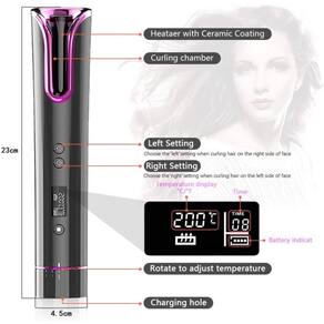 Leve-o para qualquer lugar com você, o modelador automático sem fio Crie lindos cachos ou ondas a qualquer hora e lugar com o modelador automático sem fio Unbound, o criador do curl Secret Auto Curler, fácil de usar, sem necessidade de habilidade. Cachos ou ondas perfeitos a cada vez para mover a beleza. Até 60 minutos de funcionamento sem fios, o tempo de operação dependerá da configuração de calor e temporizador selecionada, bem como do tipo de cabelo. Carregue totalmente durante a noite anterior ao primeiro uso. O tempo de carregamento varia de acordo com o adaptador e a fonte de alimentação., Ação de ondulação multidirecional esquerda, direita ou mista com proteção antiemaranhamento, 400 F a mais de calor para resultados profissionais, 3 configurações de aquecimento, 4 temporizadores que permitem criar ondulações e ondas frouxamente ajustadas a qualquer momento e em qualquer lugar. Com a função de desligamento automático, a unidade será desligada automaticamente após 15 minutos. Se deixada ligada, para preservar a vida útil da bateria., O display digital LCD mostra todas as configurações, tempo de aquecimento, mais, nível da bateria e direção de ondulação, a câmera de ondulação de cerâmica reduz o frizz e adiciona brilho