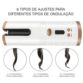 recomendamos o uso de um protetor térmico para evitar danos aos fios durante o processo de modelagem. Com o modelador ondulador de cachos sem fio baby automático cinza, você terá cachos perfeitos, com movimento natural e de forma prática.