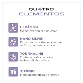 - Titânio: Tecnologia que age na umidade dos cabelos e reduz o tempo de secagem, além de eliminar o efeito frizz