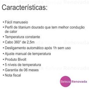 - O modelador de cachos Gold tem cor dourada, excelente condutora de calor