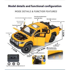 Modelo de auto todoterreno a escala 1:24 de aleación con función de sonido y luz, coche de retroceso para niños, regalo decorativo para niños mayores de 14 años. Especificaciones: Escala: 1:24 Tipo: Modelo de Auto Material: Metal Edad recomendada: 14+ Características: Fundición a presión Ventajas clave: Las puertas se abren libremente, simulando la sensación de un auto real. Función de retroceso: Presiona y sostiene el auto hacia atrás, luego suelta para que avance. El cuerpo de aleación mejora la calidad y es más resistente a golpes, ideal como juguete y regalo para niños. Material mejorado: Las llantas de goma son más duraderas y menos propensas a daños. Los modelos de autos son coleccionables preciados que documentan el diseño e historia de modelos clásicos, permitiendo abrir una ventana a la evolución de la industria automotriz. - Los detalles interiores se logran con combinación de moldeo por microinyección y decoración en molde, consiguiendo un efecto dramático. Al interior se incorpora película decorativa preimpresa para equilibrar estética y funcionalidad, además de garantizar ensamblaje preciso y movimiento fluido. - Materiales: Cuerpo de aleación de zinc y detalles en plástico ABS, para gran resistencia y durabilidad. La aleación proporciona estructura fuerte y el ABS detalles exquisitos, asegurando que cada componente perdure. - Funcionalidad: Cuenta con mecanismo de propulsión por retroceso que permite avanzar con un simple jalón, aumentando el entretenimiento. Además, tiene efectos de sonido y luz; al activarse emite el rugido clásico del motor con luces parpadeantes sincronizadas, haciendo este modelo retro aún más vívido. - Apariencia: Diseño aerodinámico y acabado de pintura detallado que simula un auto real. Cada detalle, desde ventanas precisas hasta luces y ruedas elaboradas, está fabricado con alta precisión, mostrando gran arte y realismo. - Este modelo coleccionable es hecho a mano con detalles auténticos, ideal para coleccionar, exhibir en el escritorio o regalar en ocasiones especiales. Construcción robusta de fundición a presión, desde pintura vibrante hasta acabado metálico, cada detalle está meticulosamente creado.
