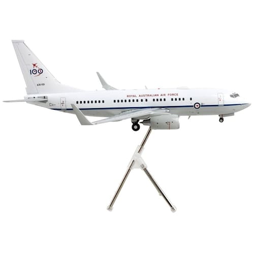 Aeronave de transporte Boeing 737-700 da GeminiJets, 100º aniversário da Força Aérea Real Australiana - Avião modelo fundido sob pressão A36-001 branco e cinza Gemini 200", série 1/200