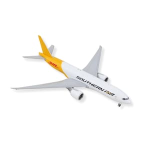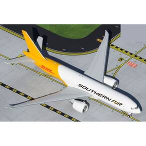 Aeronave comercial Boeing 777F da GeminiJets Southern Air - Avião modelo moldado sob pressão 1/400 branco e amarelo da DHL