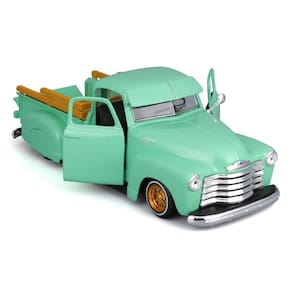 Caminhonete Maisto 1950 Chevrolet 3100 Lowrider verde claro com rodas douradas Lowriders Series 1/24 modelo fundido sob pressão