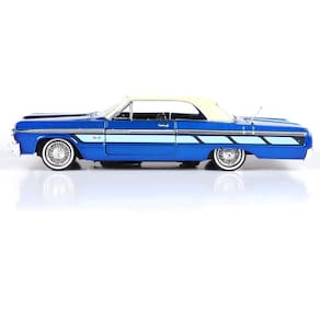 Motormax 1964 Chevrolet Impala Lowrider Hard Top Candy Blue Metallic with Cream Top Get Low Series 1/24 modelo de carro fundido sob pressão