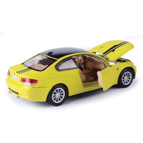 Motormax BMW M3 Coupe amarelo neon com blusa preta fosca e listras GT Racing Series 1/24, modelo fundido sob pressão - Ótimo produto