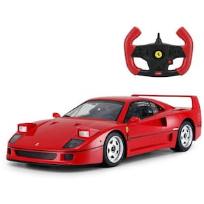 Esta é uma réplica muito bem projetada da Ferrari F40. É extremamente detalhado para um carro controlado por rádio. Este carro de controle de rádio Ferrari F40 é totalmente licenciado. Muito bem protegido. O farol dianteiro acende quando avançamos e uma luz vermelha traseira acende quando damos ré. Na parte inferior do carro RC há um botão liga/desliga junto com um mostrador que, se colocado no meio, coloca o carro em um caminho reto..