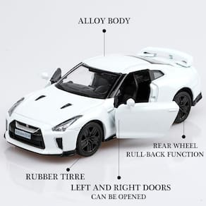 TOKAXI Os modelos de carros NISSAN GTR fundidos são feitos de materiais de liga de alta qualidade e réplicas em miniatura de carros reais. Estes brinquedos de carro são pequenos o suficiente para as mãos das crianças segurarem, o que os torna fofos e fáceis de controlar. Eles são muito práticos para carregar onde quer que você vá. Este carro não precisa de baterias - basta puxá-lo para trás e vê-lo ir! Esta é uma ótima maneira de ajudar as crianças a exercitar a coordenação motora e a velocidade de reação. A porta do carro é projetada para abrir separadamente, tornando mais fácil para as crianças aprenderem sobre carros. A decoração de interiores realista também é agradável e educativa. Você pode usá-lo como um ornamento em sua casa ou colocá-lo no seu carro para mostrar seu apreço pela arte. Este carro de puxar para trás não é apenas um brinquedo para crianças, mas também uma boa adição à coleção de modelos de carros dos entusiastas. Temos uma ampla seleção de carros para escolher, para que você possa encontrar o perfeito para sua coleção. Todos os modelos de carros TOKAXI são embalados de forma atraente em inglês, o que os torna o presente perfeito de Natal, aniversário, dia das crianças, Ano Novo para crianças, lembrancinhas de festa, decorações de casa ou brinquedos de viagem para meninos e meninas. - Materiais de alta qualidade: o carro fundido NISSAN R35 é feito de liga de zinco, peças de plástico e pneus de borracha, tornando-o seguro para as crianças brincarem. Possui acabamento interno e externo detalhado e é muito resistente. - Função: não são necessárias pilhas, mas o veículo tem um poderoso recurso de puxar. Basta puxá-lo para trás, soltar sua mão e o carro percorrerá uma longa distância. As portas podem ser abertas para ver todo o interior do veículo. Tão atraente para crianças e colecionadores. - Tamanho: modelo de veículo em escala 1/36 com linda embalagem inglesa, ideal para crianças brincarem e carregarem. Os colecionadores de carros apreciarão o tamanho pequeno perfeito, o que lhes permite coletar um conjunto completo de carros sem ocupar muito espaço. - Cresça a partir da brincadeira: ajuda as crianças a aprender mais sobre o carro, expandir seus conhecimentos, aumentar a coordenação olho-mão e a velocidade de reação das crianças na brincadeira. - Presente ideal para o festival de Natal: todos os modelos de carros TOKAXI são embalados de forma atraente em inglês, o que os torna o presente perfeito de Natal, aniversário, dia das crianças, Ano Novo para crianças, lembrancinhas de festa, decorações de casa ou brinquedos de viagem para meninos e meninas. Presentes para meninos e meninas.