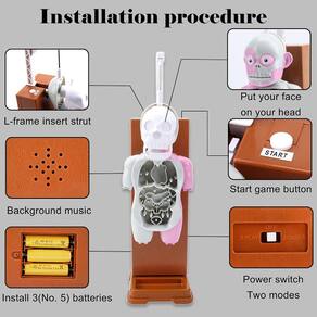 Modelo de corpo humano de brinquedo infantil Modelo de montagem anatômica de órgão humano 3D O mais novo modelo de quebra-cabeça 3D do brinquedo do corpo humano é um brinquedo educativo que monta o arranjo de órgãos humanos combinado com horror, cheio de truques e brincadeiras para que ele se divirta enquanto joga. Insira cuidadosamente a peça no modelo de órgão humano assombrado usando uma pinça.Este jogo é fácil de jogar.O jogo tem música de fundo assustadora. existem dois níveis de dificuldade; crianças e adultos podem desfrutar do jogo. Este também é um jogo intelectual; ao jogar este jogo, você pode lembrar onde os órgãos estão localizados no corpo humano.Ao jogar este jogo, você pode lembrar onde os órgãos estão localizados no corpo humano. Existem dois níveis de dificuldade: assustador e ultra pânico. Como jogar: O primeiro jogador a comprar uma carta. Conforme o cartão instrui, insira o modelo dos órgãos internos no corpo humano. Se os órgãos se encaixarem no modelo, o próximo jogador selecionará um cartão. se você falhar, o modelo do corpo humano vibrará e sacudirá todo o corpo, cabeça e todos os órgãos internos e cairá, então você perde. Característica: Faixa etária 6 anos 3 pilhas AA (não incluídas) Material plástico: tipo ABS Tamanho: 11,3x13x42 cm Peso: 0,92 kg O pacote contém: 1 modelo de brinquedo