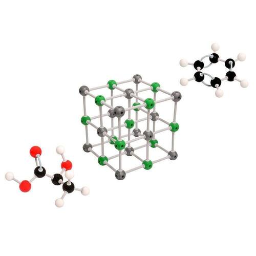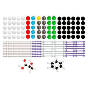 Acompanha o Kit: 01 Caixas para armazenamento; 01 Manual de instruções em português; 01 Exclusivo Guia para Montagem com exemplos de: Compostos orgânicos, inorgânicos, tipos de ligações e geometrias moleculares; 01 Termo de garantia.