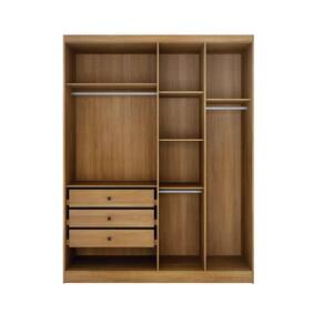 O Modulado Rizon possui um design bem diferenciado que irá te proporcionar conforto, qualidade e vai deixar seu quarto muito mais elegante! Fabricado em MDF, possui 4 portas de puxar, 3 gavetas internas com corrediças telescópicas, puxador amadeirado, 2 cabideiros em alumínio, maleiro amplo para que você possa acomodar roupas de cama, mala ou sapatos e 5 prateleiras para você organizar seus pertences. Possui a parte interna branca. Confira outros modulados e monte o quarto dos seus sonhos!