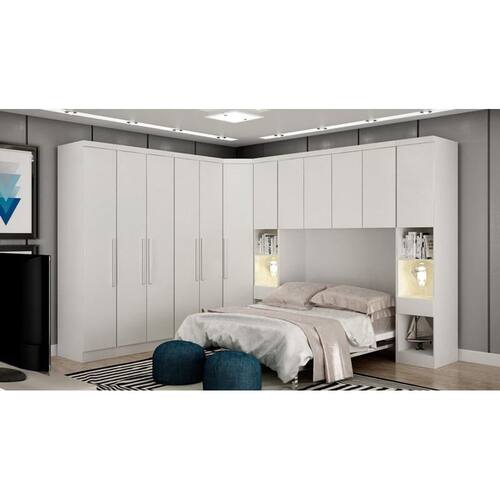Modulado Casal Completo 6 Portas 8 Gavetas - Linea-Branco - Móveis Novo HorizonteO Modulado Casal Linea irá mudar o visual do seu quarto, pois ele possui um bom número de compartimentos, além de nichos e várias prateleiras que podem acomodar bolsas, roupas de camas, sapatos e o que mais você precisar para um dia a dia mais prático. Ainda conta com 6 gavetas espaçosas com corrediças telescópicas e 5 cabideiros. Perfeito, não é mesmo? Aproveite!Faz parte do anúncio:1 Módulo 1 Porta2 Módulos 2 Portas 3 Gavetas1 Módulo Canto Oblíquio2 Módulos Mesa de Cabeceira1 Módulo Aéreo CasalObs: Objetos de decoração, cama e colchão não acompanham o produto.Particularidades do Modulado:Características:- 100% MDF- Excelente espaço interno- 15 prateleiras internas- 8 gavetas com corrediças telescópicas- 5 cabideiros de alumínio- Dobradiças de pressão 35mm - Indicado para colchões até 1,38m ou 1,58mDimensão Total:Altura: 2,36 metrosLargura: 2,86x3,36 metrosDimensões Módulo 1 Porta:Altura 2,36 metrosLargura 40,8 centímetrosProfundidade: 56,5 centímetrosDimensões Módulo Canto Oblíquio:Altura 2,36 metrosLargura 82,7 metrosProfundidade: 69,5 centímetrosDimensões Módulo 2 Portas:Altura 2,36 metrosLargura 80,4 centímetrosProfundidade: 56,5 centímetrosDimensões Módulo Mesa de Cabeceira:Altura 2,36 metrosLargura 42,6 centímetrosProfundidade: 56,5 centímetrosDimensões Módulo Aéreo Casal:Altura 2,36 metrosLargura 1,67 metrosProfundidade: 56,5 centímetrosFIQUE ATENTO: Verifique se as medidas disponíveis do seu espaço são compatíveis com as medidas do modulado.Informações Importantes:.- Produtos podem apresentar diferenças de tonalidades entre a foto na tela e o produto real, devido a calibração de cor de tela.- Limpar com flanela ou pano macio. Não utilizar álcool. Não utilizar produtos abrasivos ou corrosivos.- Nós prezamos pela qualidade da entrega em primeiro lugar, trabalhamos com transportadoras altamente selecionadas e os melhores materiais de embalagem.- A montagem é de total responsabilidade do comprador. Antes de comprar, verifique o espaço disponível para a montagem.- Certifique-se de que o produto caiba em elevadores e vãos de escadas, não fazemos içamentos. Quaisquer despesas deste tipo ficam a cargo do cliente- Garantia de 3 meses contra defeitos de fabricação.