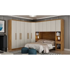 Modulado Casal Completo 6 Portas 8 Gavetas - Linea-Cumaru/Fendi - Móveis Novo HorizonteO Modulado Casal Linea irá mudar o visual do seu quarto, pois ele possui um bom número de compartimentos, além de nichos e várias prateleiras que podem acomodar bolsas, roupas de camas, sapatos e o que mais você precisar para um dia a dia mais prático. Ainda conta com 6 gavetas espaçosas com corrediças telescópicas e 5 cabideiros. Perfeito, não é mesmo? Aproveite!Faz parte do anúncio:1 Módulo 1 Porta2 Módulos 2 Portas 3 Gavetas1 Módulo Canto Oblíquio2 Módulos Mesa de Cabeceira1 Módulo Aéreo CasalObs: Objetos de decoração, cama e colchão não acompanham o produto.Particularidades do Modulado:Características:- 100% MDF- Excelente espaço interno- 15 prateleiras internas- 8 gavetas com corrediças telescópicas- 5 cabideiros de alumínio- Dobradiças de pressão 35mm - Indicado para colchões até 1,38m ou 1,58mDimensão Total:Altura: 2,36 metrosLargura: 2,86x3,36 metrosDimensões Módulo 1 Porta:Altura 2,36 metrosLargura 40,8 centímetrosProfundidade: 56,5 centímetrosDimensões Módulo Canto Oblíquio:Altura 2,36 metrosLargura 82,7 centímetrosProfundidade: 69,5 centímetrosDimensões Módulo 2 Portas:Altura 2,36 metrosLargura 80,4 centímetrosProfundidade: 56,5 centímetrosDimensões Módulo Mesa de Cabeceira:Altura 2,36 metrosLargura 42,6 centímetrosProfundidade: 56,5 centímetrosDimensões Módulo Aéreo Casal:Altura 2,36 metrosLargura 1,67 metrosProfundidade: 56,5 centímetrosFIQUE ATENTO: Verifique se as medidas disponíveis do seu espaço são compatíveis com as medidas do modulado.Informações Importantes:.- Produtos podem apresentar diferenças de tonalidades entre a foto na tela e o produto real, devido a calibração de cor de tela.- Limpar com flanela ou pano macio. Não utilizar álcool. Não utilizar produtos abrasivos ou corrosivos.- Nós prezamos pela qualidade da entrega em primeiro lugar, trabalhamos com transportadoras altamente selecionadas e os melhores materiais de embalagem.- A montagem é de total responsabilidade do comprador. Antes de comprar, verifique o espaço disponível para a montagem.- Certifique-se de que o produto caiba em elevadores e vãos de escadas, não fazemos içamentos. Quaisquer despesas deste tipo ficam a cargo do cliente- Garantia de 3 meses contra defeitos de fabricação.