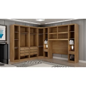 Modulado Casal Completo 6 Portas 6 Gavetas - Rizon - Móveis Novo HorizonteO Modulado Casal Rizon irá mudar o visual do seu quarto, pois ele possui um bom número de compartimentos, além de nichos e várias prateleiras que podem acomodar bolsas, roupas de camas, sapatos e o que mais você precisar para um dia a dia mais prático. Ainda conta com 6 gavetas espaçosas com corrediças telescópicas e 5 cabideiros. Perfeito, não é mesmo? Aproveite!Faz parte do anúncio:1 Módulo 1 Porta2 Módulos 2 Portas 3 Gavetas1 Módulo Canto Oblíquio2 Módulos Mesa de Cabeceira1 Módulo Aéreo CasalObs: Objetos de decoração, cama e colchão não acompanham o produto.Particularidades do Modulado:Características:- 100% MDF- Excelente espaço interno- 15 prateleiras internas- 8 gavetas com corrediças telescópicas- 5 cabideiros de alumínio- Dobradiças de pressão 35mm - Indicado para colchões até 1,38m ou 1,58mDimensão Total:Altura: 2,36 metrosLargura: 2,86x3,36 metrosDimensões Módulo 1 Porta:Altura 2,36 metrosLargura 40,8 centímetrosProfundidade: 56,5 centímetrosDimensões Módulo Canto Oblíquio:Altura 2,36 metrosLargura 82,7 centímetrosProfundidade: 69,5 centímetrosDimensões Módulo 2 Portas:Altura 2,36 metrosLargura 80,4 centímetrosProfundidade: 56,5 centímetrosDimensões Módulo Mesa de Cabeceira:Altura 2,36 metrosLargura 42,6 centímetrosProfundidade: 56,5 centímetrosDimensões Módulo Aéreo Casal:Altura 2,36 metrosLargura 1,67 metrosProfundidade: 56,5 centímetrosFIQUE ATENTO: Verifique se as medidas disponíveis do seu espaço são compatíveis com as medidas do modulado.Informações Importantes:.- Produtos podem apresentar diferenças de tonalidades entre a foto na tela e o produto real, devido a calibração de cor de tela.- Limpar com flanela ou pano macio. Não utilizar álcool. Não utilizar produtos abrasivos ou corrosivos.- Nós prezamos pela qualidade da entrega em primeiro lugar, trabalhamos com transportadoras altamente selecionadas e os melhores materiais de embalagem.- A montagem é de total responsabilidade do comprador. Antes de comprar, verifique o espaço disponível para a montagem.- Certifique-se de que o produto caiba em elevadores e vãos de escadas, não fazemos içamentos. Quaisquer despesas deste tipo ficam a cargo do cliente- Garantia de 3 meses contra defeitos de fabricação.