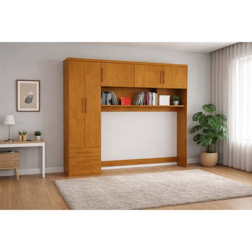 O módulo aéreo amplia o aproveitamento vertical do ambiente, sendo perfeito para quartos compactos ou para quem precisa de mais espaço sem abrir mão de um visual moderno e organizado. As gavetas são ideais para peças menores, enquanto as portas mantêm tudo protegido e alinhado ao design do ambiente.
