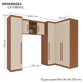 Pensado para otimizar o espaço e trazer praticidade ao quarto infantil, este modulado é composto por 6 peças funcionais: 1 módulo prateleira, 2 módulos aéreos, 1 nicho aéreo, 1 módulo de canto e 1 módulo gaveteiro. Estruturado para oferecer organização e conforto no dia a dia, conta com cabideiros em alumínio resistentes, corrediças telescópicas que garantem abertura suave e durabilidade, além de puxadores em MDF, que agregam charme e qualidade ao acabamento. Um conjunto versátil e moderno, ideal para acompanhar o crescimento das crianças com praticidade e estilo. Ambiente Principal: Quarto Infantil codigo_ean: 7900288255013 Complexidade da Montagem: Alta: deve ser montado por um montador especializado Cor: Cinamomo / Off White Cor do Produto: Cinamomo / Off White Escala de Brilho: Semi-Fosco Linha ou Coleção: Liz Manual de Montagem e Instalação: https://cdn2.madeiramadeira.com.br/atributo/benetil-moveis/3149991-4938-17557151239587.pdf Marca: Espresso Móveis Material Principal: MDP Medida de Cada Item: Prateleira: 230 cm x 47 cm x 60 cm / Aéreo: 66 cm x 42 cm x 32 cm / Aéreo Nicho: 66 cm x 31 cm x 32 cm / Canto Reto: 230 cm x 106,5 cm x 60 cm / Gaveteiro: 230 cm x 93 cm x 60 cm modular: Sim Necessita Montagem: Sim Origem do Produto: Nacional Peso: 189.4 Recomendações de Uso, Manutenção e Limpeza: Utilizar pano levemente umedecido. Não utilizar solventes nem produtos de limpeza. Sistema de Montagem: Parafusos e Cavilhas Suporta Até (kg): 70