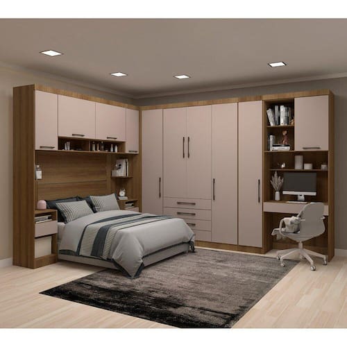 A Linha Eucamóveis Paris é uma ótima opção para você completar o seu quarto de maneira prática e funcional. Além de ser destaque pela sua capacidade, os módulos possuem dobradiças metálicas de 26mm, puxadores em PS na cor Champagne e corrediças telescópicas proporcionando a abertura total das gavetas.