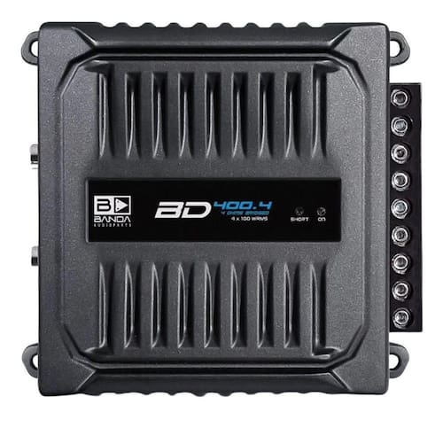 O 400.4 oferece 400Wrms com configuração de 4 canais de 100Wrms a 2 Ohms cada, ou 2 canais de 200Wrms 4 Ohms em Bridge. Esta linha é muito utilizada para sistemas de pequeno porte por aceitar várias configurações de instalação atendendo as mais diversas necessidades do mercado tocando qualquer tipo de alto falante, desde Subwoofers até Tweeters.