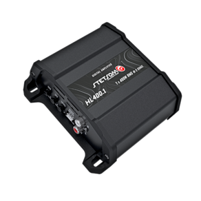ESPECIFICAÇÕES TÉCNICAS CARACTERÍSTICAS HL400.1 ? 2 OHMS Número de Canais 1 Potência RMS 400W Potência RMS em 2 Ohms 13,8V 1 x 245W Potência RMS em 4 Ohms 13,8V 1 x 410W Potência RMS em 2 Ohms 14,4V 1 x 435W Potência RMS em 4 Ohms 14,4V 1 x 270W Tensão de Alimentação 9V a 15,5V DC Resposta em Frequência 10Hz a 22KHz Crossover Low Pass 60Hz a 22KHz Crossover High Pass 10Hz a 2,5KHz Relação Sinal Ruído >90dB Sensibilidade de Entrada RCA: 200mV / HIGH: 1.5V Impedância de Entrada RCA: 9K Ohms / HIGH: 1K Ohms Impedância Mínima de Saída 2 OHMS Consumo com Sinal Musical 18A Consumo com Sinal Bass 33,7A Dimensões (A x L x C) mm 50 x 125 x 124 mm Peso Kg 482g