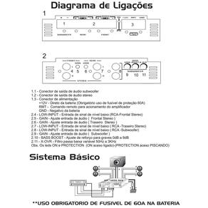 - Controle de ganho: Stereo Frontal e Traseiro / Subwoofer;