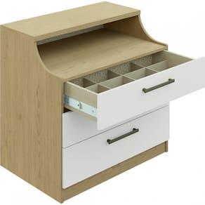 A Linha Elegance da Móveis Castro é produzida em estrutura MDP e com acabamento em U.V, oferece um amplo espaço e perfeita distribuição interna, que propõem ambientes mais compactos, com toda a qualidade e beleza na medida perfeita para seu espaço. Este módulo possui 03 gavetas sendo que a superior acompanha divisor de objetos. Acabamento da Gaveta: Pintura Ambiente Principal: Quarto Complexidade da Montagem: Alta: deve ser montado por um montador especializado Composição: MDP Cor: Angelin/Blanc Cor do Produto: Angelin/Blanc Cor Interna: Bege Escala de Brilho: Semi-Fosco Espessura do Material da Estrutura: 15 Gaveta com Chave: Não Itens Inclusos: 1 Módulo Bancada, Kit Ferragens e Manual de Montagem Manual de Montagem e Instalação: https://cdn2.madeiramadeira.com.br/atributo/moveis-castro/888153-4203c-1.pdf Material da Gaveta: MDP Material Principal: MDP Necessita Montagem: Sim O Módulo Pode ser utilizado individualmente: Não Origem do Produto: Nacional Peso: 28,5 Peso Máximo por Gaveta: 5 Possui Espelho: Não Possui Pés: Não Possui Portas: Não Possui Prateleiras: Não Recomendações de Uso, Manutenção e Limpeza: Limpeza com pano umedecido. Sistema de Montagem: Parafusos. Suporta Até (kg): 15 Tipo de Corrediça da Gaveta: Metálica Telescópica Tipo de Módulo: Cômoda Tipo de Puxador da Gaveta: Externo Ean: 7898414098385